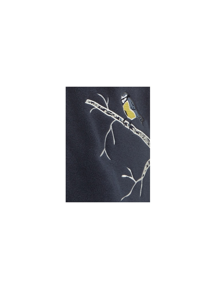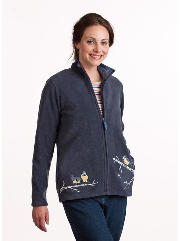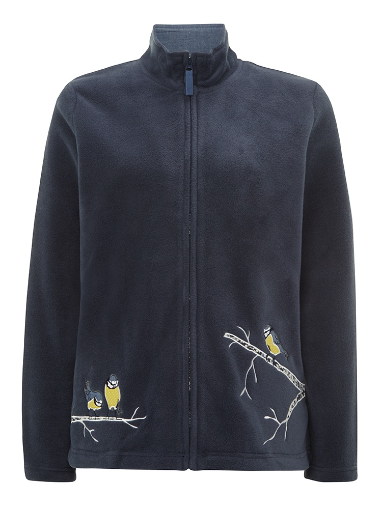 A traditional item from Tulchan, this cosy fleece incorporates an embroidered and appliqué blue tit bird detailing to the front of the garment. This navy fleece jacket features a zip fastening and two side pockets.