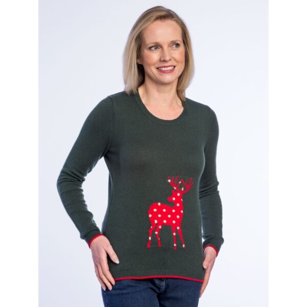 Tulchan spot stag jumper. The perfect winter jumper. Our cotton and wool blend offers comfort and warmth without the itchiness. This would make a very stylish Christmas jumper too!