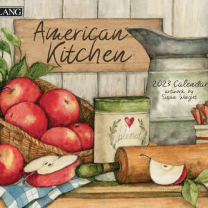 Amerikaanse Lang kalender. LANG-wandkalenders hebben maandelijkse full colour afbeeldingen, elegant linnen reliëfpapier en een koperen oogje om op te hangen.
