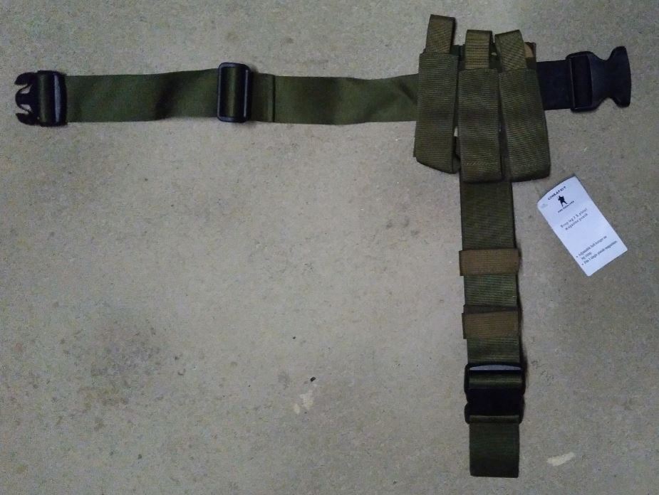 Adjustable belt hanger and leg strap.