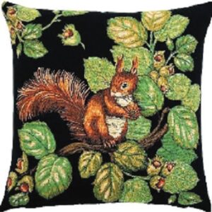 Gobelin kussen. De afbeelding van bloeiende klaprozen is ingeweven, niet bedrukt.
