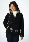 Het vest dat je een dikke knuffel geeft, in prachtig polarfleece met volledige ritssluiting en opstaande kraag gevoerd met grijze fleece. De voorkant en de twee zakken hebben een waterval van herfstbladeren geborduurd en geappliceerd in grijstinten en zilver.