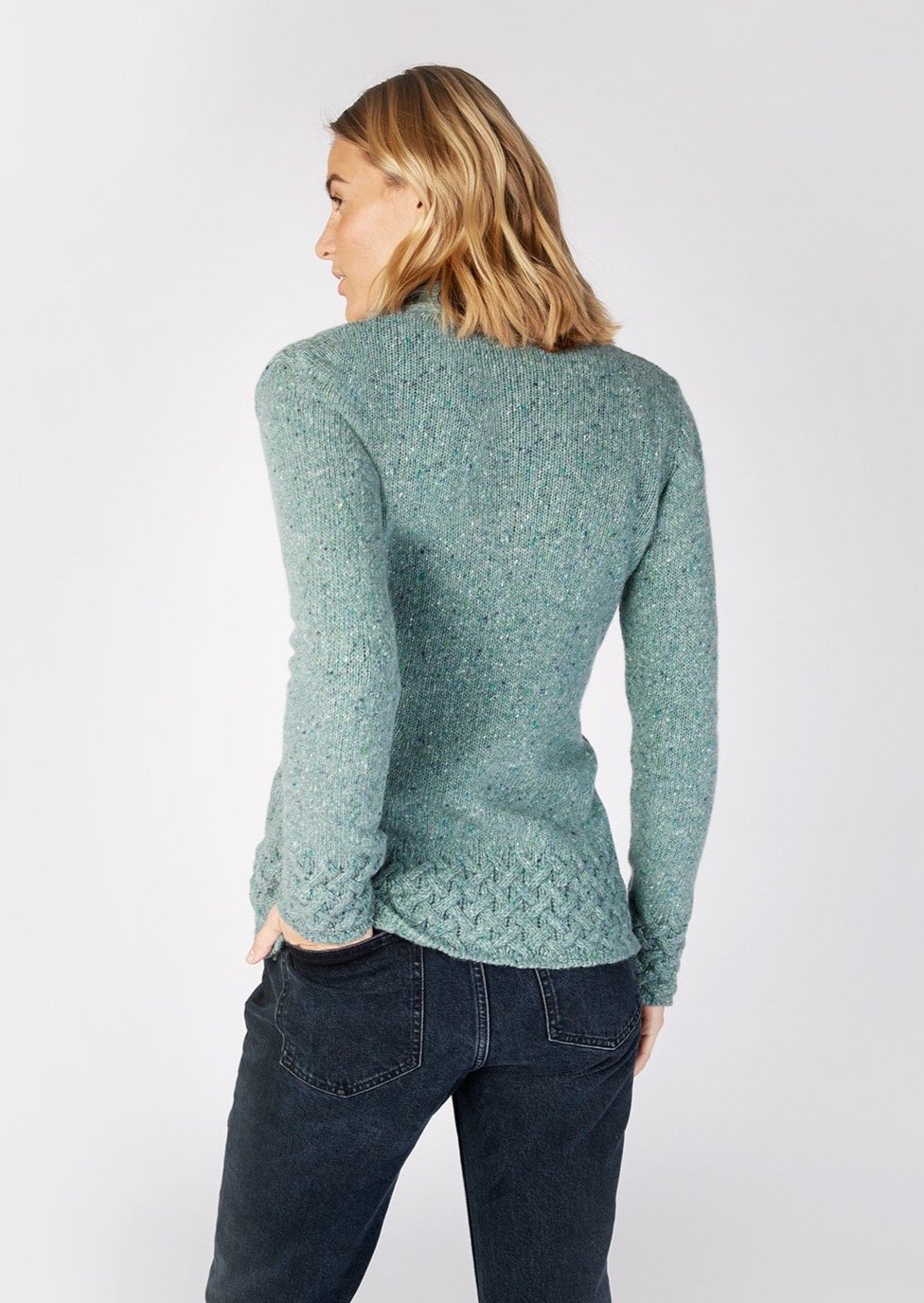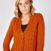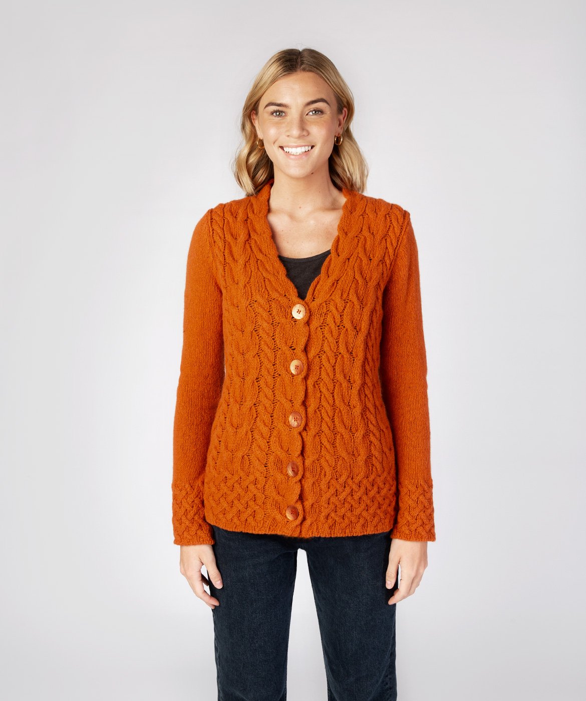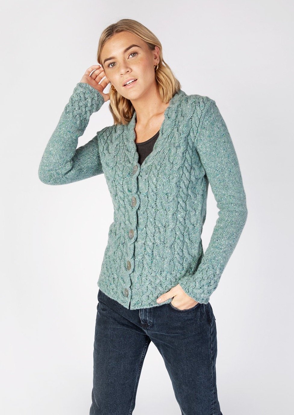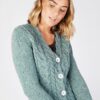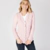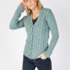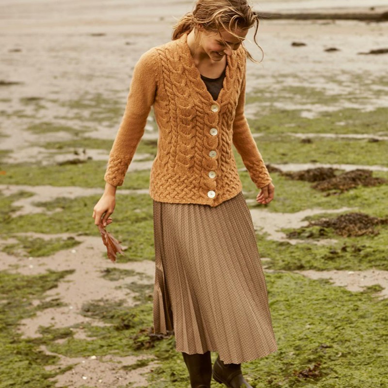 Heerlijk comfortabel en luxe aanvoelend dames vest van IrelandsEye door de toevoeging van Cashmere aan de Merinowol. Het vest is gebreid in een schitterend Iers Kabelpatroon, heeft een mooie geschulpte afwerking en sluit met 5 knopen. Het vestje is licht getailleerd waardoor het mooi vrouwelijk afkleed. Tijdloos!