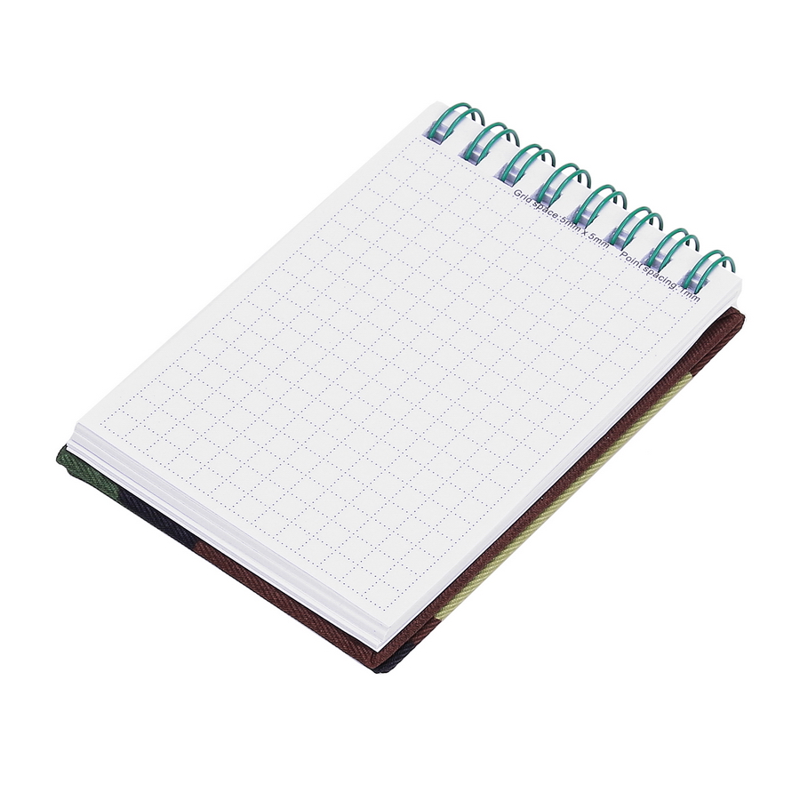 Notitieboekje met gelinieerd papier. Spiraal gebonden. Camo omslag.