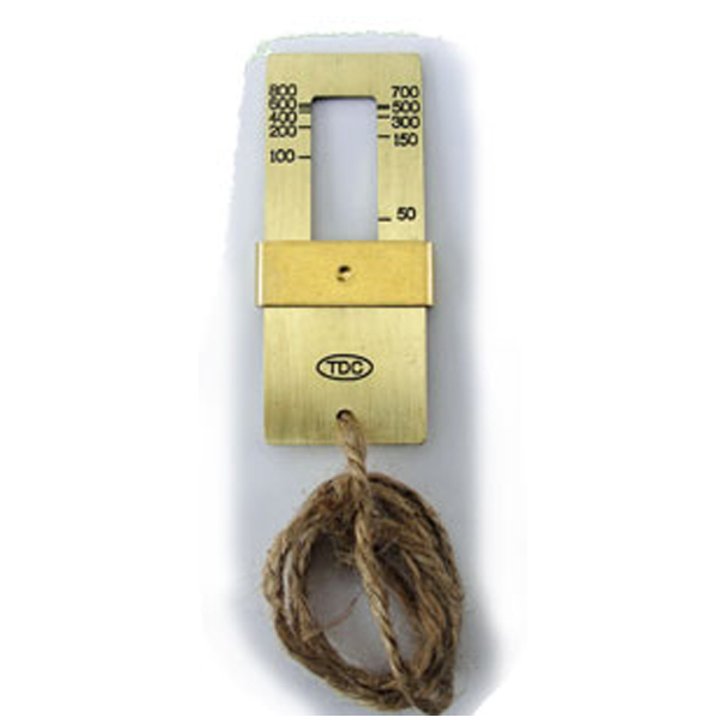Afstandsmeter. Foolproof techniek uit de 19e eeuw die nog steeds werkt. Houdt afstandsmeter in de ene hand, plaats de knoop tussen je lippen of tussen je tanden, trek het koord strak en verplaats de schuif totdat uw object, een vent in het voorterrein, de boven-en onderkant van het venster raakt. Nu lees je de afstand af van de afstandsschaal. Geen batterijen nodig. Waterdicht, haha.