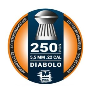 Ansia luchtbukskogeltjes / diabolo’s / pellets in 4,5mm – kaiber .177 met een platte kop. 500 stuks in blikje met schroefdeksel.