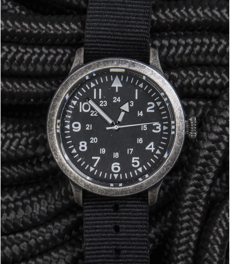 Polshorloge in British Army-stijl met quartz uurwerk en gemakkelijk afleesbare uren-, minuten- en secondenaanduidingen.