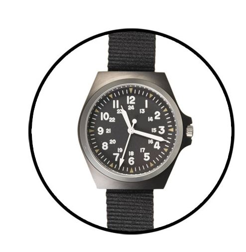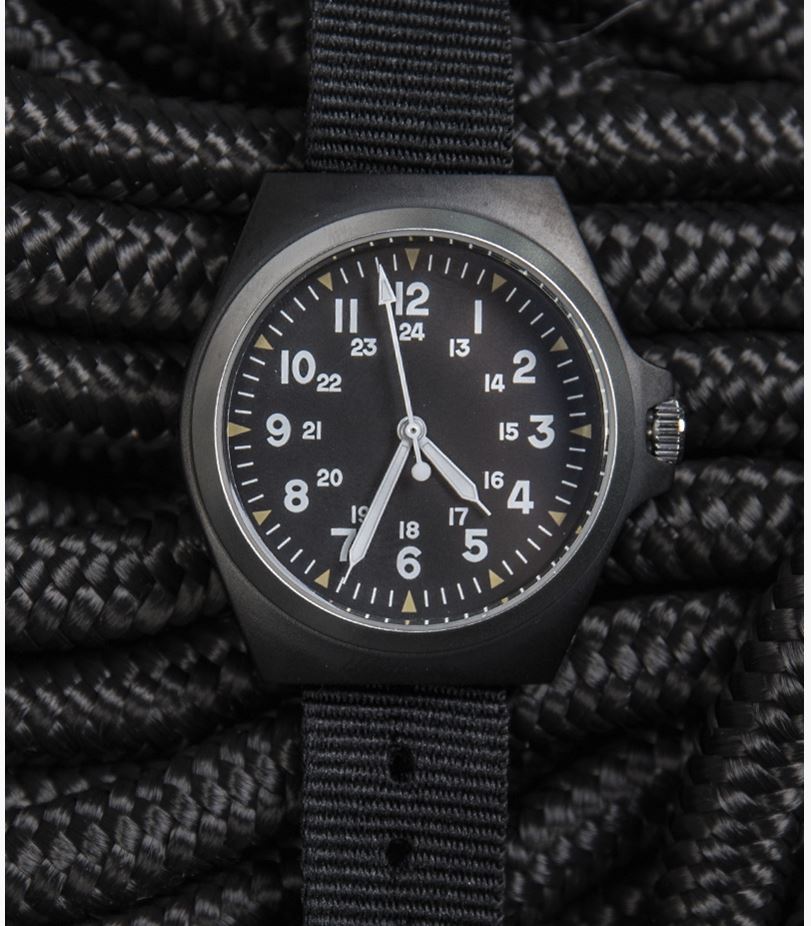 Polshorloge in Amerikaanse legerstijl met quartz uurwerk en gemakkelijk afleesbare uren-, minuten- en secondenweergave.