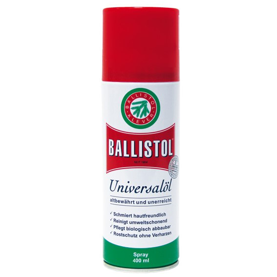 Ballistol is het meest veelzijdige onderhoudsmiddel dat je kunt bedenken. Het is geschikt voor leder, hout, metaal, kunststof, de vacht van hond en paard, enz. Het is een natuurlijk middel en volkomen veilig. Het kan zelfs gebruikt worden in de keuken. Spuitbus 400 ml.
