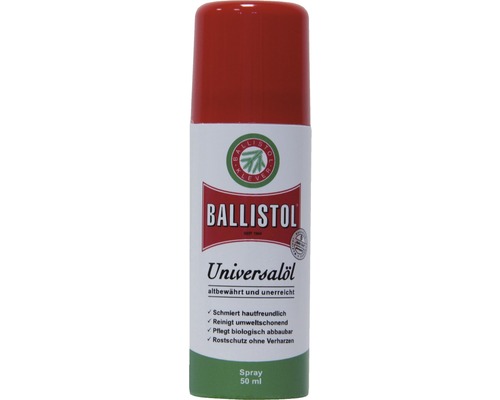 Ballistol®-olie en spray is een mild alkalische speciale olie met reinigende, conserverende, beschermende, onderhoudende, impregnerende, smerende en ontsmettende eigenschappen.