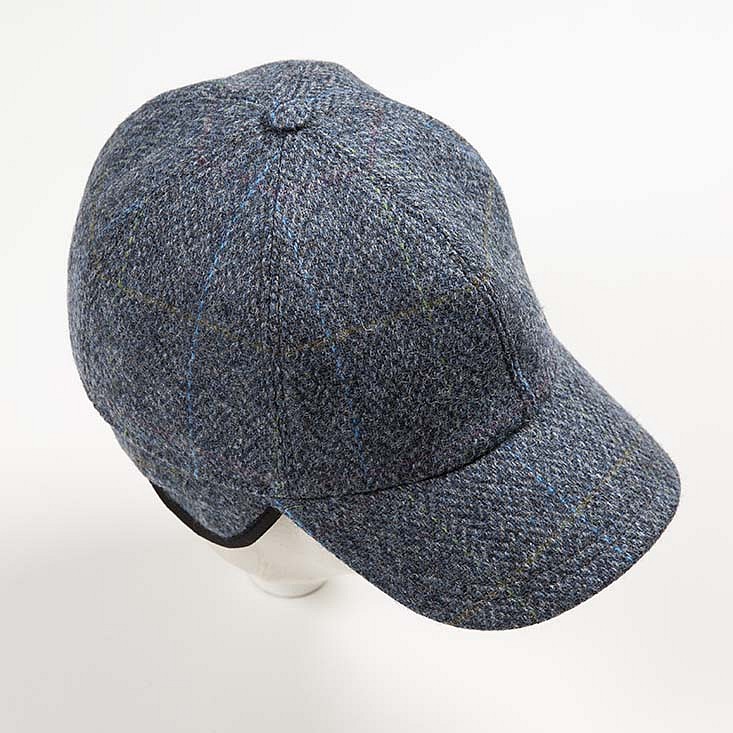 Tweed baseballcap met oorklep. Een speelse draai aan een Amerikaanse klassieker. Gemaakt van Ierse tweed die je warm houdt met zijn uitklapbare oorwarmers. Alleen even maten, zie maattabel.