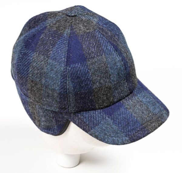 Tweed baseballcap met oorklep. Een speelse draai aan een Amerikaanse klassieker. Gemaakt van Ierse tweed die je warm houdt met zijn uitklapbare oorwarmers. Alleen even maten, zie maattabel. Made in Ireland.