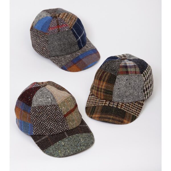 Tweed cap met patchwork. Geen twee caps zijn hetzelfde. Gemaakt van wollen tweed. Made in Ireland