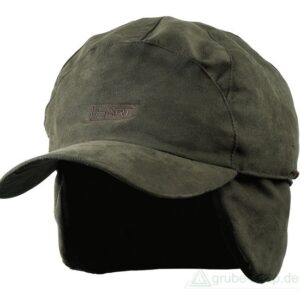 Tweed cap met uitklapbare oorwarmers. Donkergroen met zwart visgraat met een subtiele over-ruit. Made in Ireland.