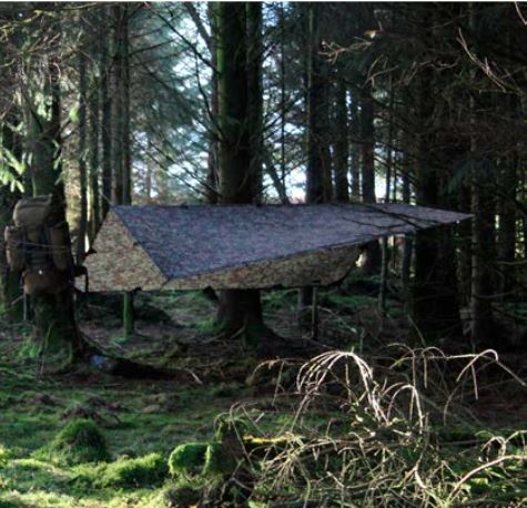 Een basha is een zeil van 255 X 172 cm. en ideaal te gebruiken voor een onderkomen omdat er aan de hoekpunten en in het zeil zelf lussen zijn aangebracht om opspannen mogelijk te maken. Veel sterker dan de poncho, kan niet lekken. Zeer licht van gewicht: 1025g. Ook ideaal om een lean-to van te maken, zie foto. Niet zichtbaar op de afbeelding: de lussen om touw of bungees aan te bevestigen.