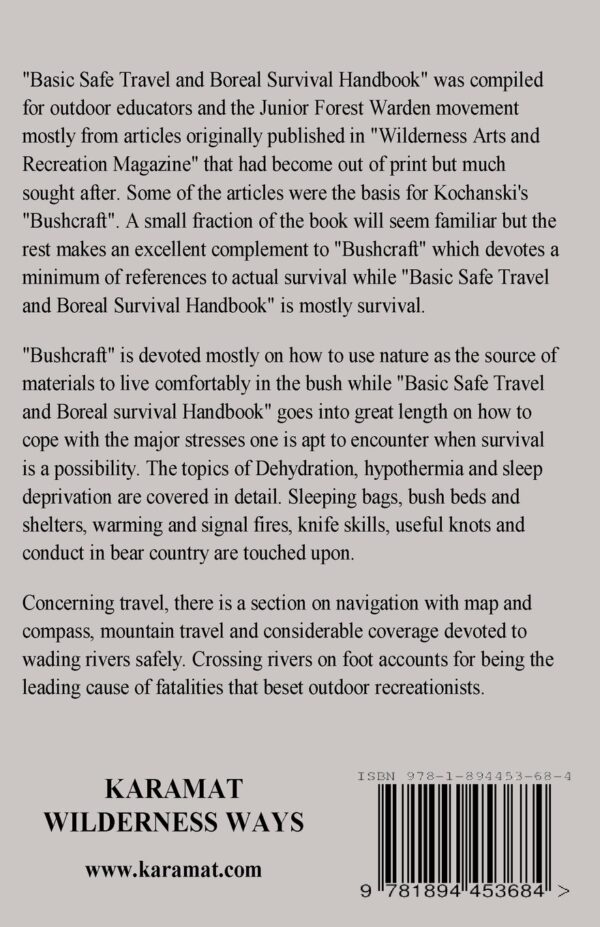 “Basic Safe Travel and Boreal Survival Handbook” was compiled for outdoor educators and the Junior Forest Warden movement mostly from articles originally published in “Wilderness Arts and Recreation Magazine” that had become out of print but much sought after. Some of the articles were the basis for Kochanski’s “Bushcraft.” A small fraction of the book will seem familiar but the rest makes an excellent complement to “Bushcraft” which devotes a minimum of references to actual survival while “Basic Safe Travel and Boreal Survival Handbook” is mostly survival.