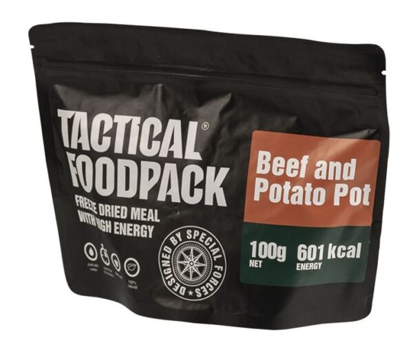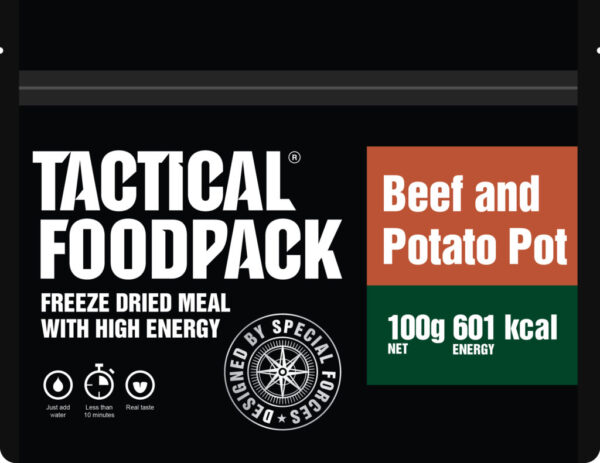 De stoofpot van rundvlees en aardappel is de uitvoering van Tactical Foodpack van Hongaarse Goulash. Deze maaltijd bevat komijn dat de maaltijd een aangename smaaknuance geeft. Alle ingrediënten zijn 100% natuurlijk en het product bevat geen conserveermiddelen. Deze maaltijd is voor 1 persoon.