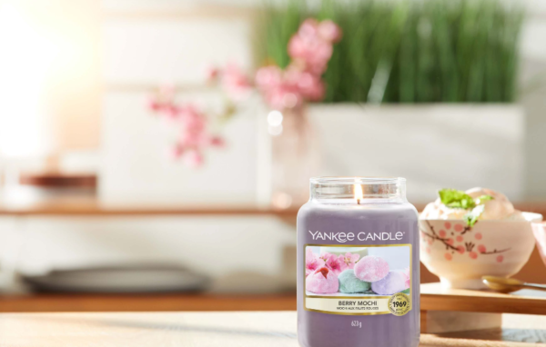 Yankee Candle Berry Mochi geurkaars in een grote glazen apothekerspot met deksel.