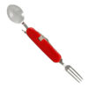 Compacte set met mes, vork en lepel, compleet met blikopener, flesopener en koordbevestiging.