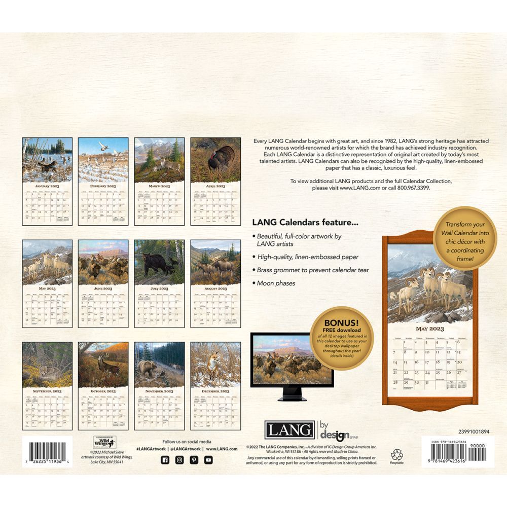 Amerikaanse Lang kalender. LANG-wandkalenders hebben maandelijkse full colour afbeeldingen, elegant linnen reliëfpapier en een koperen oogje om op te hangen.