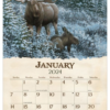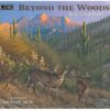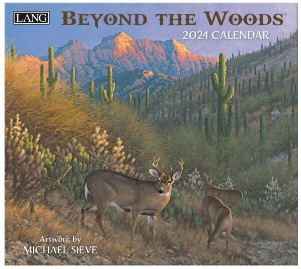 De Beyond the Woods 2024 wandkalender toont elke maand kunstwerken van Michael Sieve van bosdieren in hun natuurlijke leefomgeving.