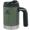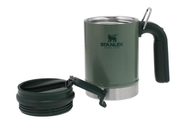 Stanley Big Grip Camp Mug. Geisoleerde RVS mok met een inhoud van bijna een halve liter. Dat betekent minder lopen naar het koffieapparaat of de waterketel. Zijn naam heeft hij vanwege de handgreep die ook met handschoenen aan goed is beet te pakken.