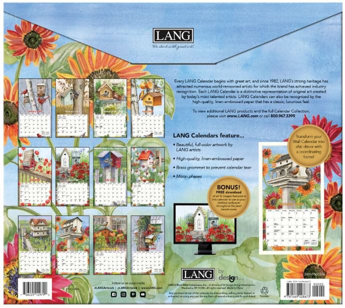 LANG wandkalenders zijn voorzien van maandelijkse kleurenafbeeldingen, elegant linnen reliëfpapier en een messing ring om op te hangen.