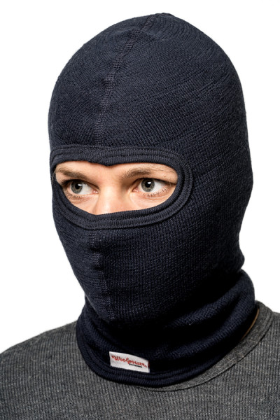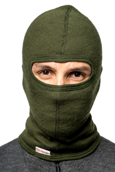 Woolpower Bivakmuts 200. Heeft een enkele opening die kan worden aangepast om alles behalve de ogen te bedekken.