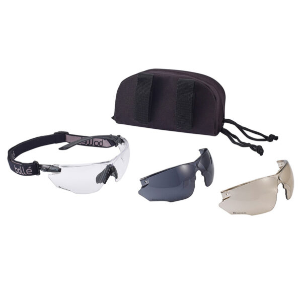 Bollé combat kit bril platinum. Mono lens, eenvoudig te verwissellen naar getinte lens, smoke of CSP. Deze ballistische veiligheidsbril COMBAT past zich moeiteloos aan aan uw behoefte en biedt u maximale bescherming.
