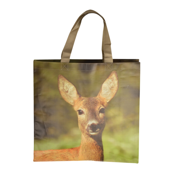 Deze ruime en stabiele tas biedt voldoende ruimte voor veel boodschappen. De tas is aan beide kanten voorzien van een verschillende fotoprint.