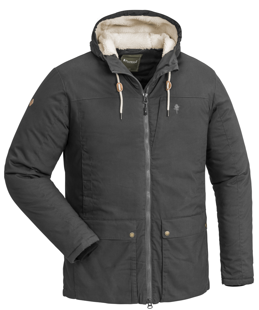 Voorzien van tweeweg ritssluiting. Grote voorzakken. Hoge steekzakken om de handen warm te houden, voorzien van fleecevoering en stille magneetsluiting. Een borstzak en een binnenzak. Verstelbare capuchon met zachte en warme hoogpolige fleecevoering