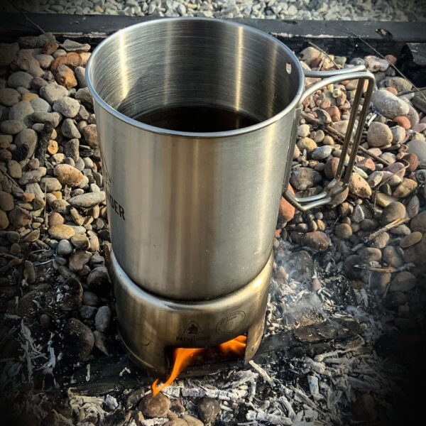 Roestvrijstalen brandertje. Pathfinder RVS comfoor voor drinkfles of mok. Deze brander past om de Pathfinder roestvrijstalen fles en sommige andere flessen en je kunt je fles of mok verwarmen door de brander op een vuur of kolen te plaatsen of door er een alcoholbrander onder te plaatsen.