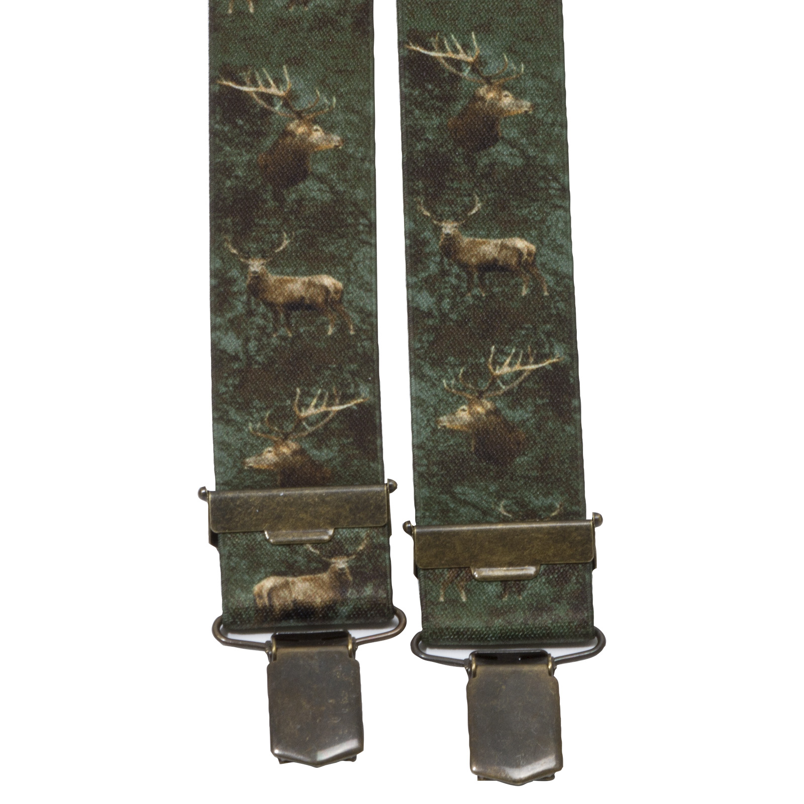 Brede bretels met edelherten. Antieke koperen clips, mooie geschenkverpakking.