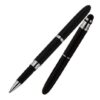 This pen is all brass with a Matte Black finish and Chrome Accents.