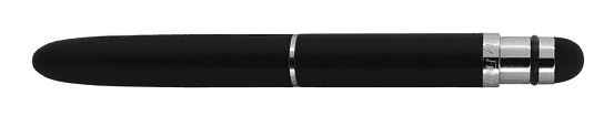 Fisher Bullet Stylus Pen. De stylus werkt met alle schermen, ook met de nieuwste. En je kunt er ook gewoon mee schrijven. Altijd en overal zelfs. In de ruimte, onder water, enz. Dit is een uitermate stevige pen. Gemaakt van messing, matzwart gecoat met chromen accenten. De stylus kan nog vervangen worden ook.