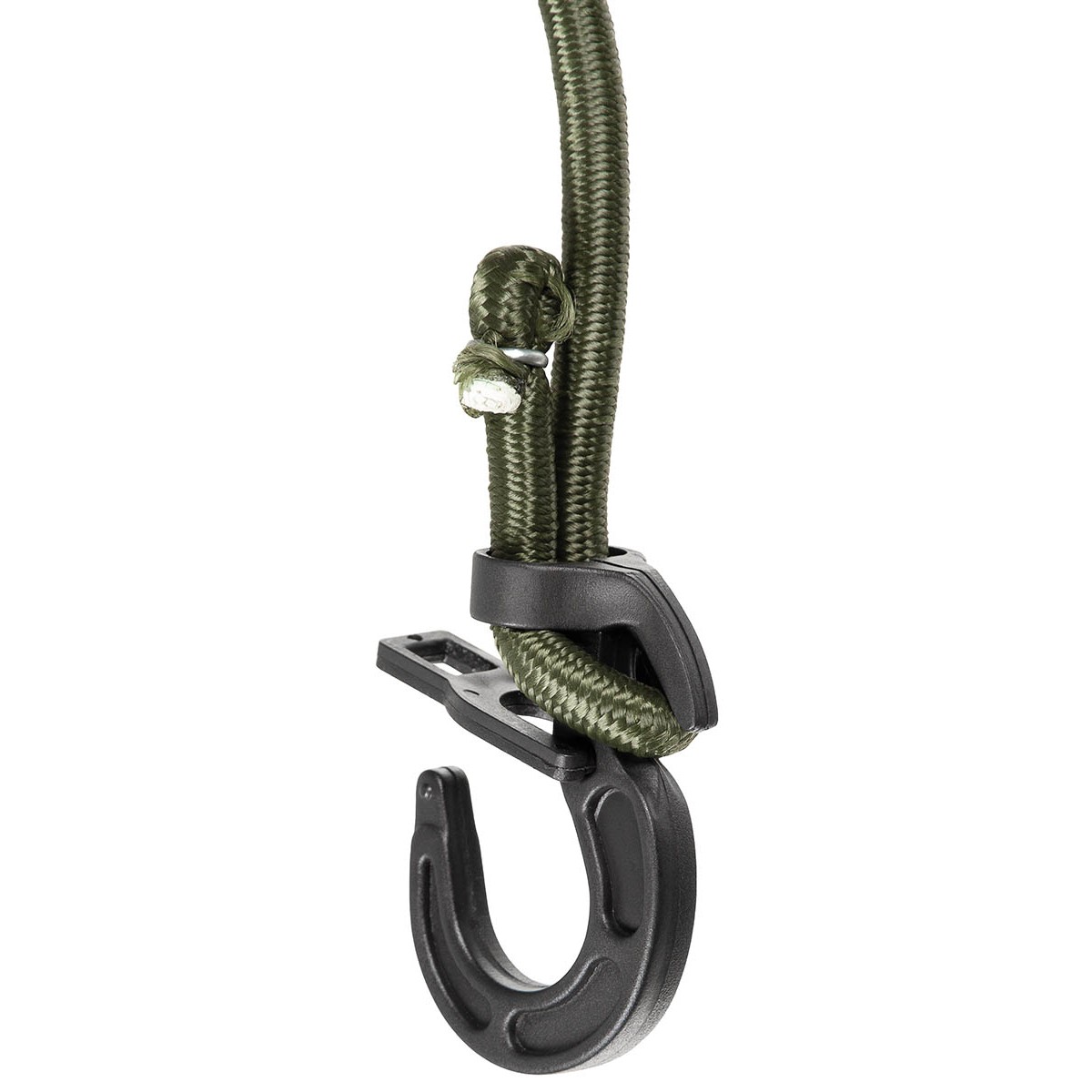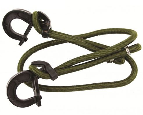 In lengte verstelbare bungee. Maximale lengte 100cm. – 8mm doorsnede – Lengte 1 meter – Volledig verstelbaar Materiaal: — Snoer: polypropyleen, rubber — Haak: polypropyleen