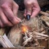 Het mahonie kleurige Bushcraft halskoord van natuurlijk geverfd rundleer is geïnspireerd op de beproefde methode van traditioneel vuur maken met een vuurstaal en striker.