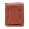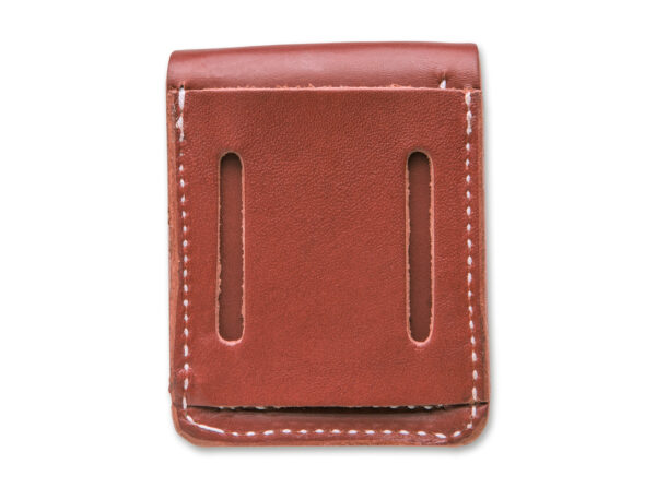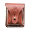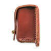 Dubbel gestikte, sterke leren tas voor buitengebruik. Met riemlus voor horizontaal of verticaal dragen.