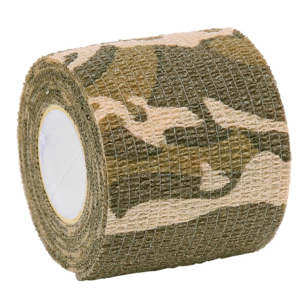 Camouflage wrap tape is geen gewone tape. Het plakt niet aan gladde oppervlakten, maar wel aan zichzelf.