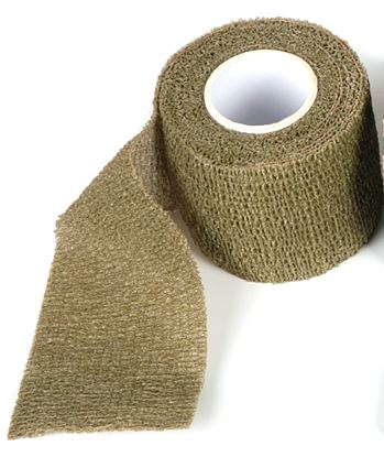 Camouflage wrap tape is geen gewone tape. Het plakt niet aan gladde oppervlakten, maar wel aan zichzelf.