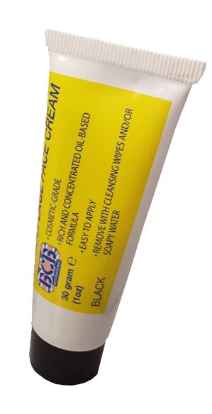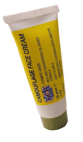 Camouflagepatronen maken is heel eenvoudig met deze tube’s camouflagecreme. Simpel iets op de vinger, en daarna uitvegen in het gewenste patroon. Droogt mat op.