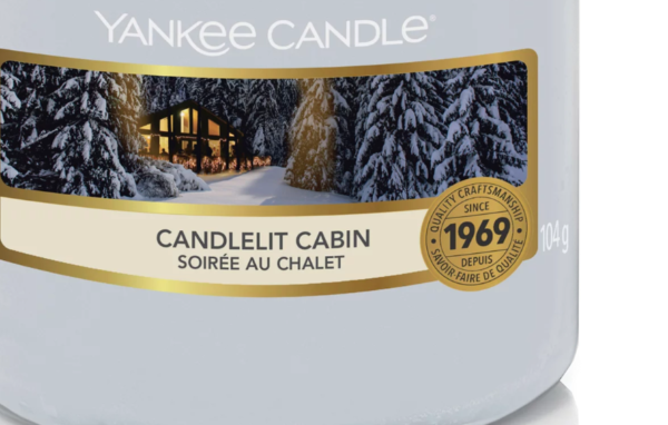 Yankee Candle Candlelit Cabin geurkaars in een kleine glazen apothekerspot. Dit is een houtachtige geur.