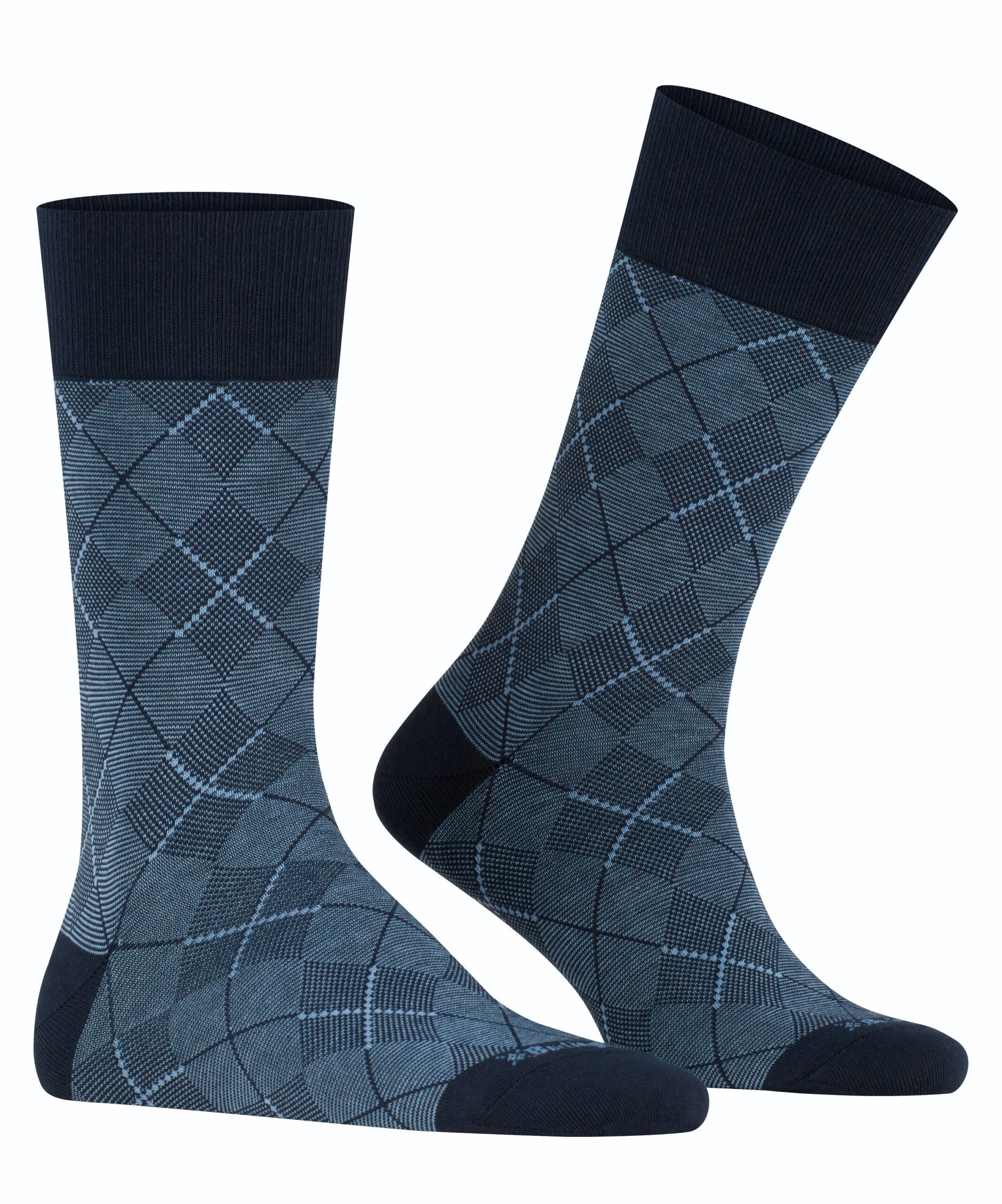 Burlington Carrington Men Socks. De cavalier onder de Argyles! Deze sokken imponeren met kleurbehoud en stijlexpertise. Het ruitvormige ontwerp van de diamanten en het verfijnde piquépatroon geven dit Argyle-merkpatroon een moderne, elegante touch. Het perfecte accessoire voor smart casual stijlen of dandy looks.