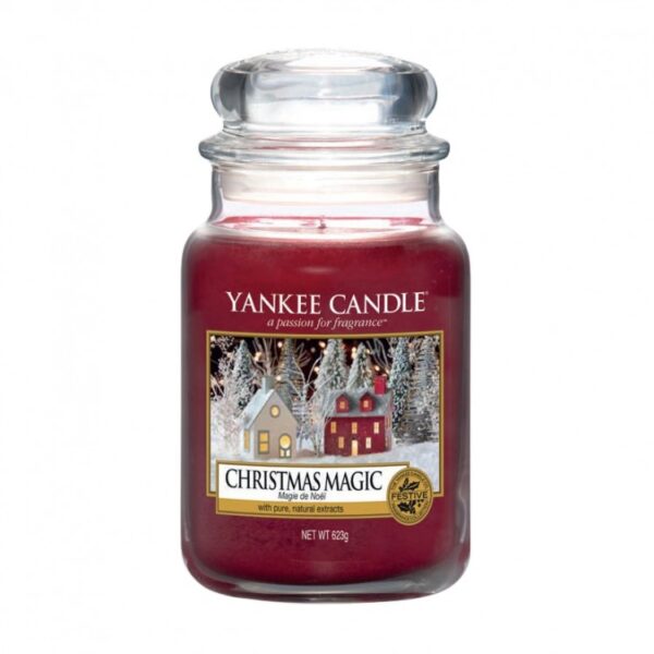 Yankee Candle Christmas Magic grote pot geurkaars. Klassieke kerstgeuren – balsem en dennen – nemen een verfijnde wending met hints van berken en eucalyptus