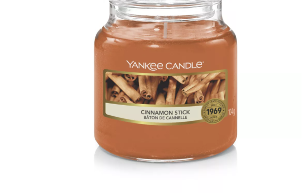 Yankee Candle Cinnamon Stick geurkaars in een kleine glazen apothekerspot met deksel.