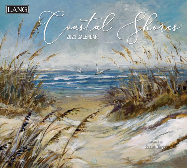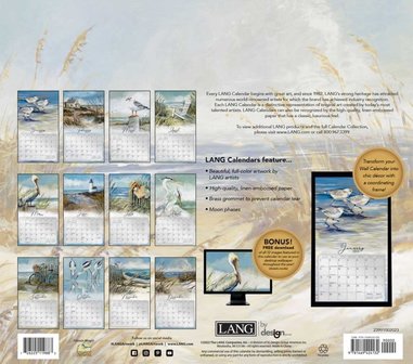 Amerikaanse Lang kalender. LANG-wandkalenders hebben maandelijkse full colour afbeeldingen, elegant linnen reliëfpapier en een koperen oogje om op te hangen.