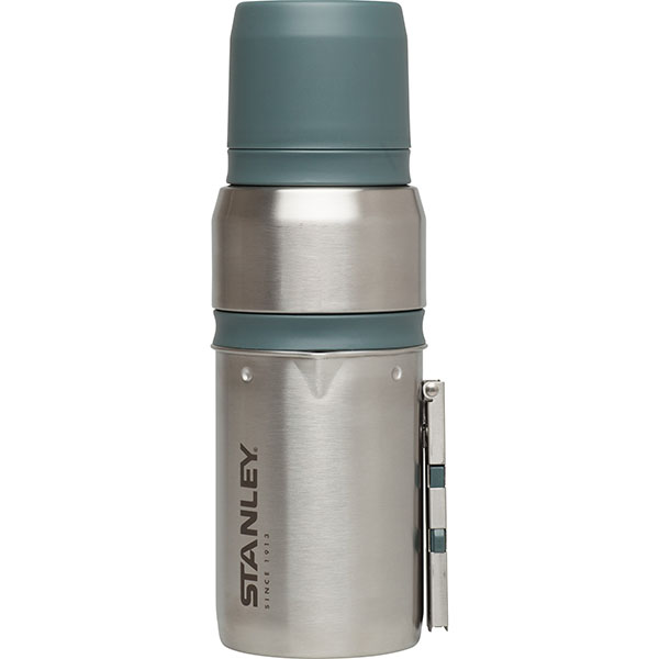 Stanley French Press (percolator) Mountain Vacuum Coffee System 0,5L. Voor de ware koffieliefhebber is deze set van Stanley een geschenk uit de hemel. Voordat je op stap gaat vul je de thermosfles met kokend water. Het water is dan zeker de eerste drie uur warm genoeg om er heerlijke koffie mee te maken. Wanneer je arabica koffie neemt kun je er ook koffie van zetten als het water verder is afgekoeld zonder dat deze bitter zal worden.