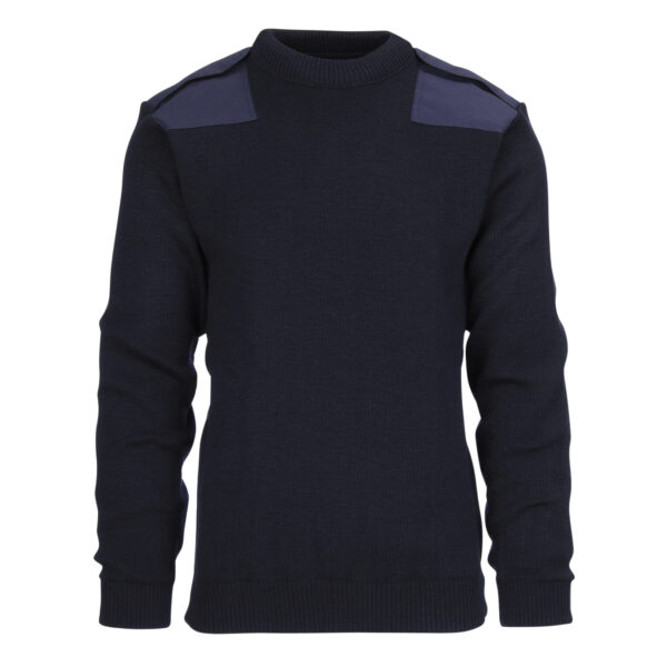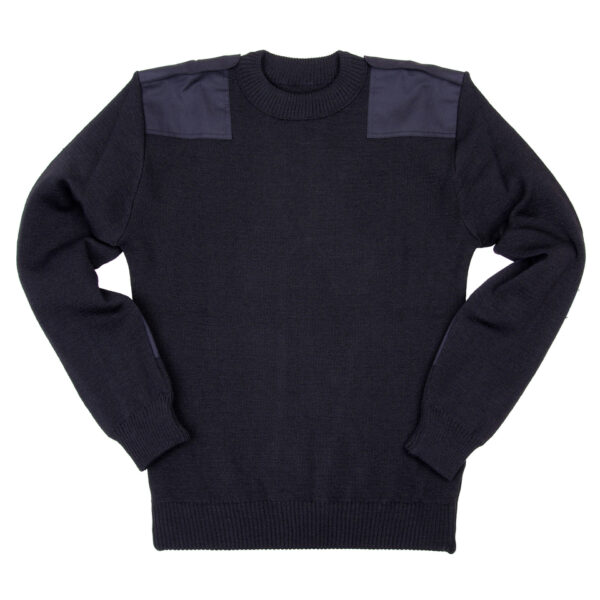Commando trui met epauletten op de schouders en een borstzak. Door de 100% wol is dit een erg fijne trui om in de buitenlucht mee te werken.