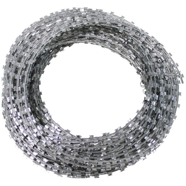 Natodraad oftewel concertina – verdere ontwikkeling van prikkeldraad. Heeft vlijmscherpe mesjes i.p.v. prikkels.