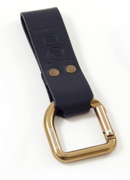 We have also designed the D-ring as a carabiner which gives the product many more features and applications.The D-ring is made of sturdy 8mm thick aluminum and tested up to a 450kg breaking load which means that you can use it for lots of different purposes, for example to hang up equipment, pull an animal or anchor a dog leash to your waist.